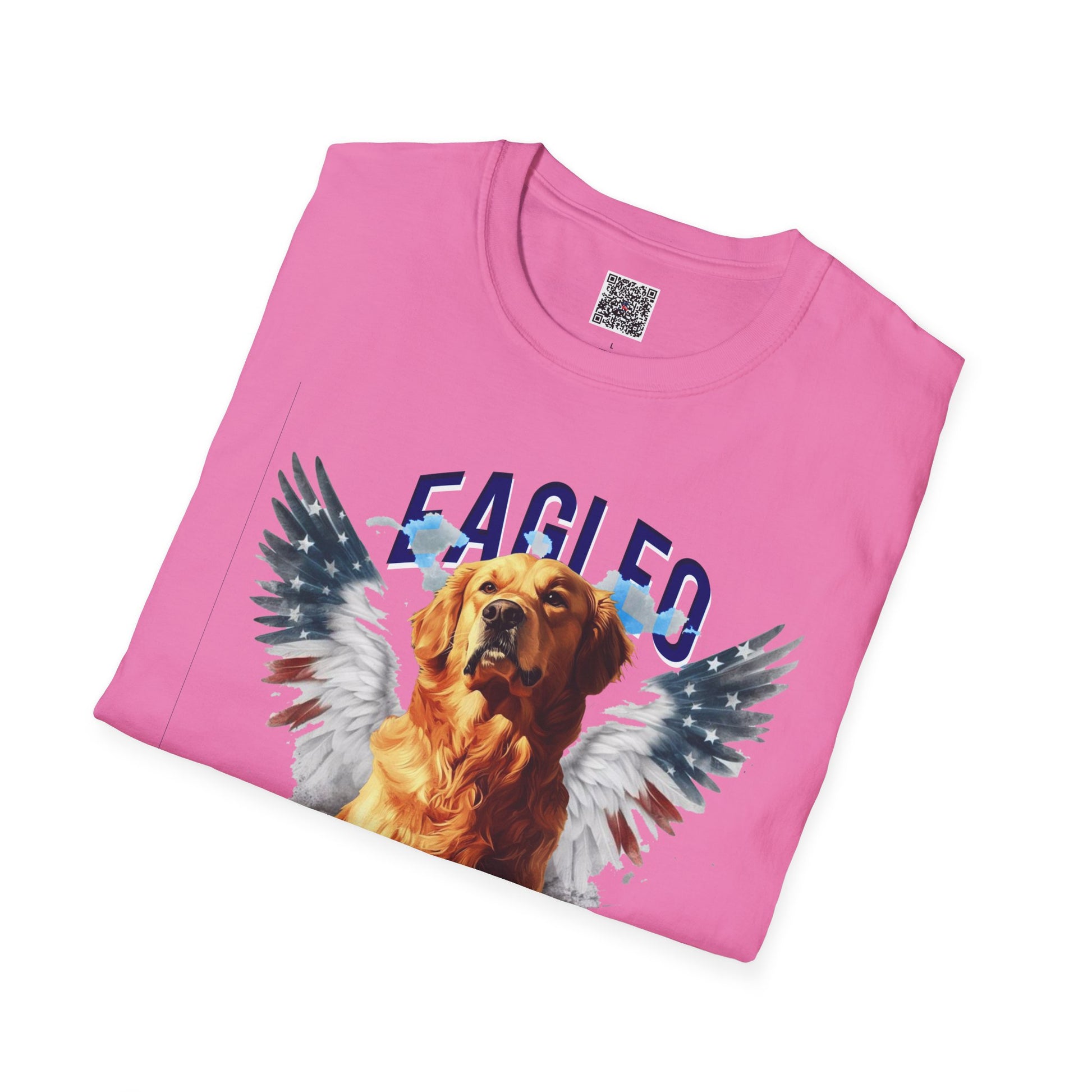 🇺🇸 Eagleo USA Dog Tee – PawPatriotPrints Celebrate American pride with your loyal pup! 🐶 Soft 100% ring-spun cotton, printed in USA. Cozy fit, durable tee. Ethical QR code for traceability. Perfect dog lover gift or everyday patriotic style. Machine wash cold. Ships fast to USA!.
